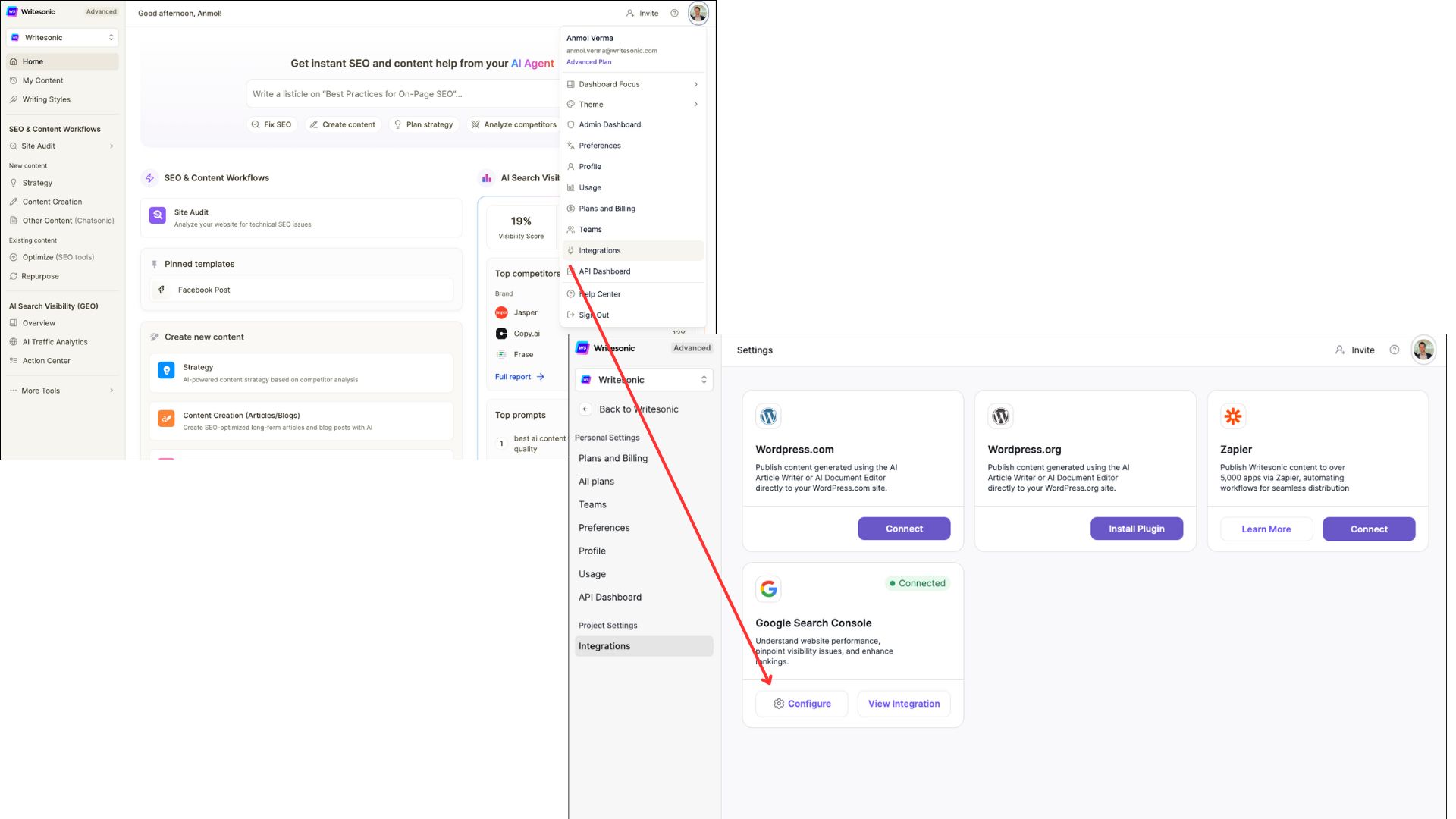 Gain detailed insights into your website's performance directly from your Writesonic dashboard.