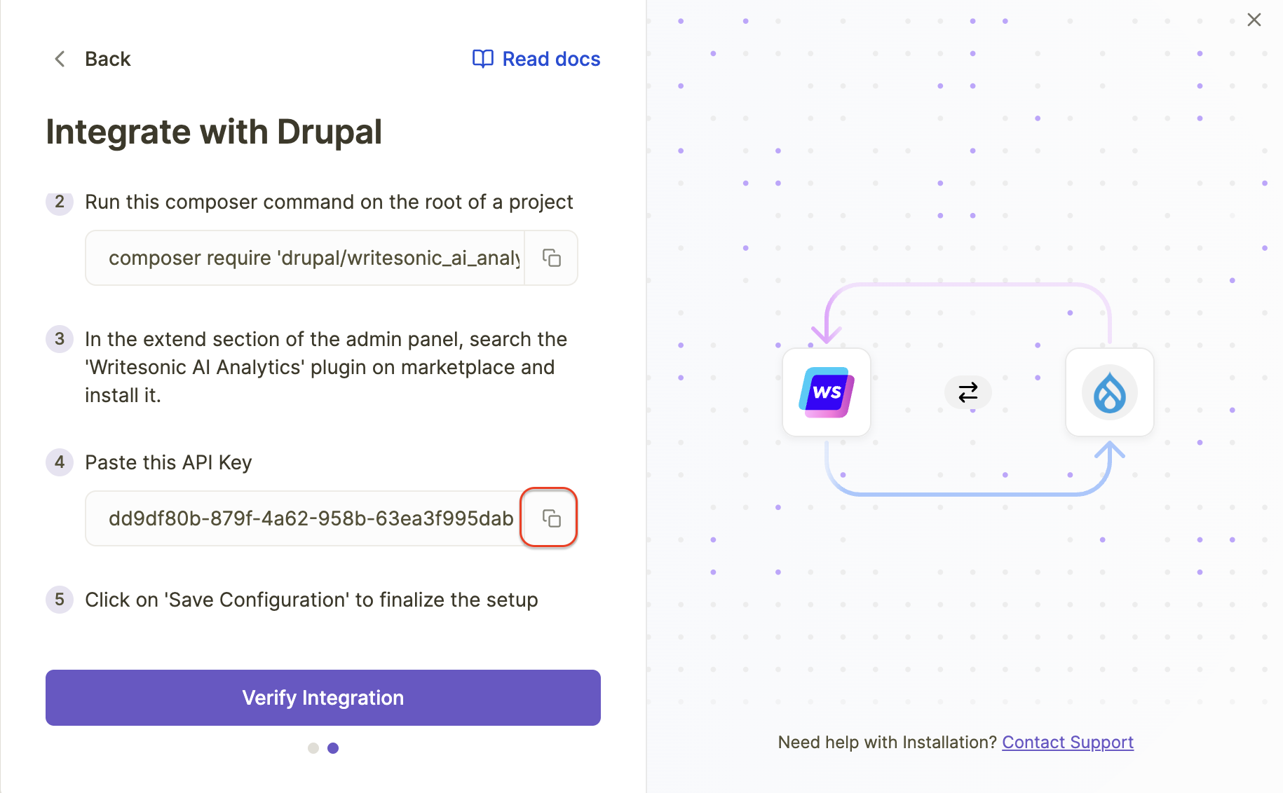 - Click on "Verify Integration" to confirm that your Drupal site is properly connected