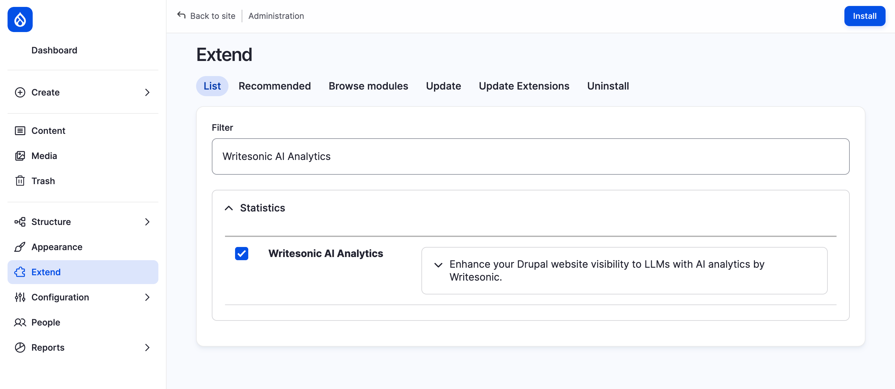 This guide walks you through the process of implementing AI Bot Analytics on your Drupal website using the Writesonic AI Analytics module.