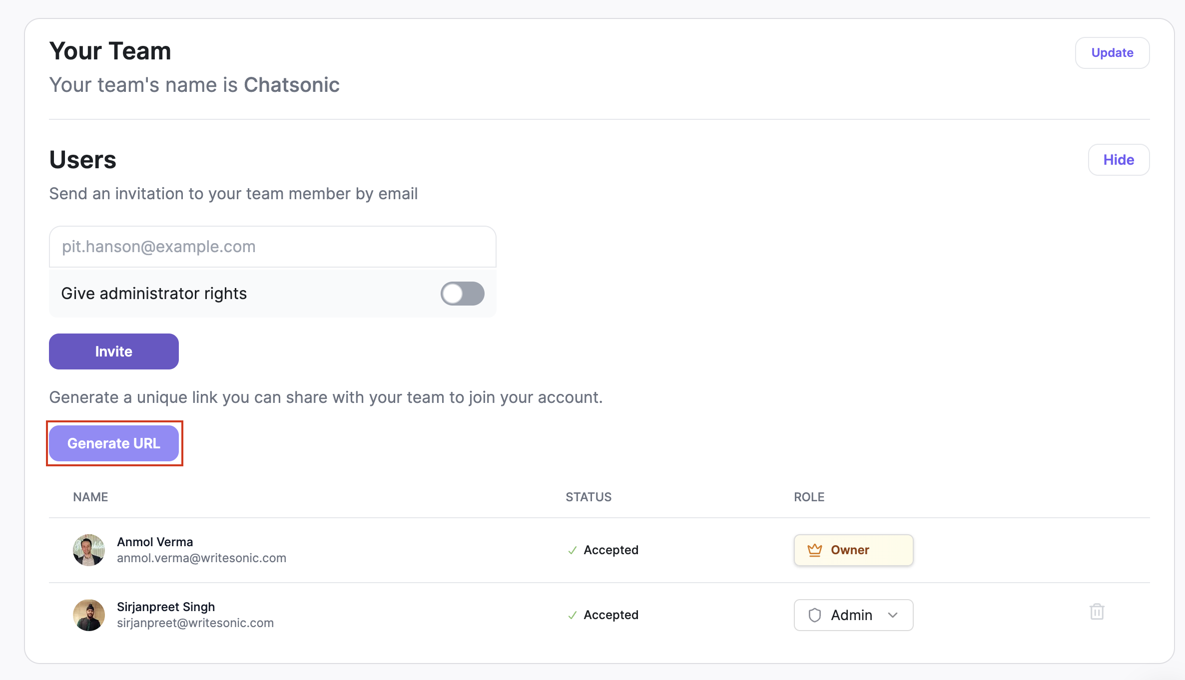 - Copy the unique link and share it with your team to join your account