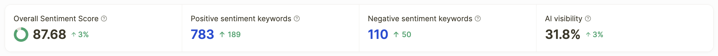 At the top of the page, you'll see four high-level metrics that give you an instant snapshot of your brand's sentiment health: