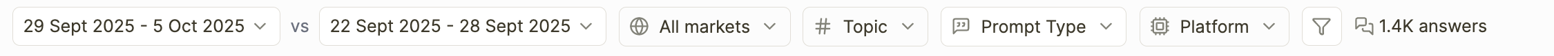 These filters let you isolate exactly the data you need — whether you're looking at a specific market, a particular AI platform, or a narrow topic area.